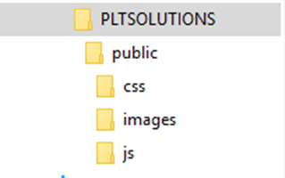 Ở PLTSOLUTIONS bạn có thể thay bằng tên thư mục mà bạn muốn (Nhớ tuân thủ theo quy tắc đặt tên thư mục), thư mục css chứa các file .css, thư mục images chứa các file hình ảnh, thư mục js chứa các file .js và thư mục public chứa các thư mục css, images, js.