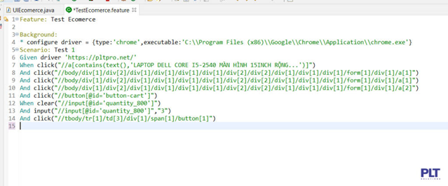 Tiếp theo mình tiến hành tạo Background thiết lập môi trường Test cho file TestEcomerce.feature.
